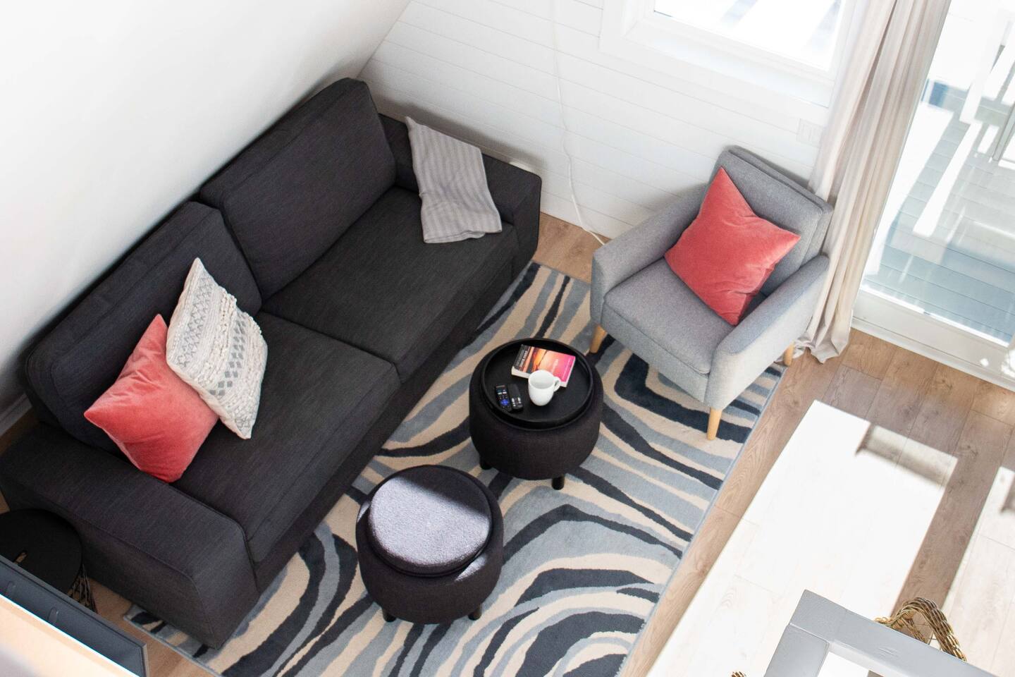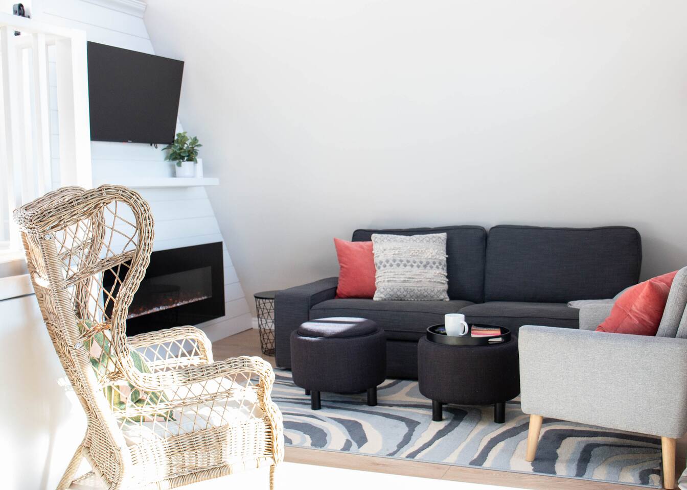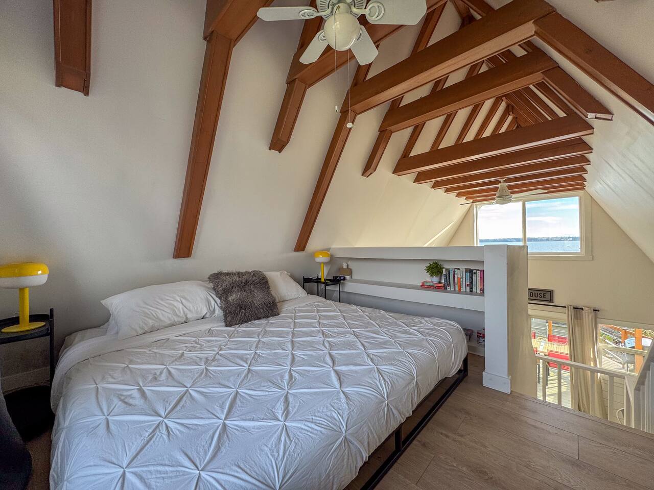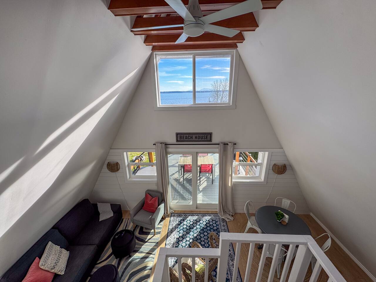 Welcome to Little A by the Bay – a cozy, peaceful A-frame overlooking Birch Bay. Enjoy stunning sunsets from your perch above the water, or take a short 5-minute stroll to the shoreline for an up-close view. With coffee shops, restaurants, and boutique shopping nearby, it’s the perfect escape for couples or small groups looking to relax and recharge. The Space • Well-stocked kitchen for easy meals • Cozy living room with sofa + electric fireplace • Smart TV for streaming • Bedroom with twin + full bed • Bathroom with shower/tub combo • Loft with king bed and bay views • Deck with dining + gas grill • Outdoor firepit (seasonal use) ___________________________________ Important Note: The king size bed is only accessible via the staircase. Also, there are a couple small steps up to the front porch to access the front door. Please keep this in mind when booking your stay.