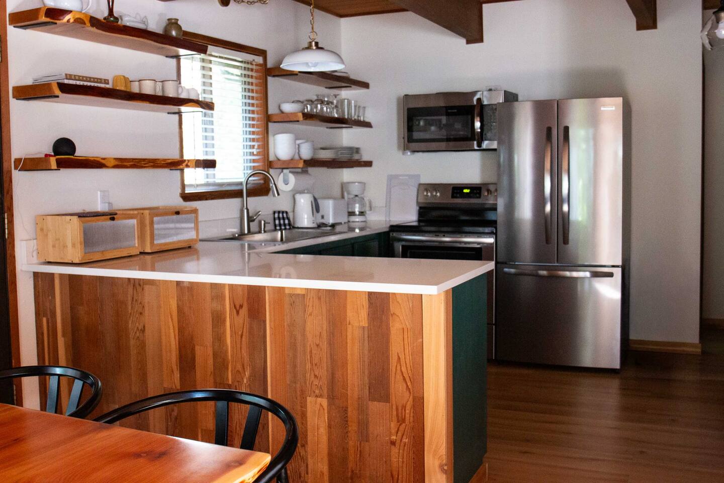Escape to the mountains and experience the perfect blend of comfort, adventure, and relaxation at Reeder Run. This charming 2-story cabin is located in the coveted Glacier Springs community, within 30 miles from the majestic Mt. Baker. With 3 bedrooms and 2 bathrooms, this cabin comfortably accommodates families, friends, or couples looking for a serene getaway. The Space: Step into a mudroom with a full-size washer and dryer, then move into the open-concept living, dining, and kitchen area—perfect for relaxing and gathering with loved ones. Cook up a feast in the fully-equipped kitchen with stainless appliances, and enjoy meals at the live-edge dining table with plenty of seating. The living area features a large, comfy sectional, a cozy gas fireplace, and a Smart TV for nights in. Sleeping Arrangements: First Floor: One spacious bedroom with a queen-size bed and nearby full bathroom with tub. Upstairs: Two large bedrooms—one with a king bed and attached full bath, the other with two queen beds. Ideal for families or groups. Outdoors: Step outside to the deck with a gas grill and Adirondack seating, perfect for relaxing evenings. And don’t miss the brand-new cedar sauna, tucked at the back of the house—your ultimate spot to unwind after skiing, hiking, or exploring Mt. Baker. ***** Groceries & Dining: We recommend doing any large grocery shopping in Bellingham on your way to Reeder Run. There are a few small, locally owned grocery stores along Mt. Baker Highway—perfect for last-minute or forgotten items. While there are some fantastic restaurants in the area, their hours can vary, especially during the slower seasons, so we suggest arriving prepared with food and essentials. ***** PLEASE NOTE: There is an active Boil Water Advisory in the Glacier Springs community. Water should be brought to a rolling boil for one minute and cooled before being used for drinking, cooking, making ice, brushing teeth, and washing dishes due to the presence of small traces of bacteria in the water samples.